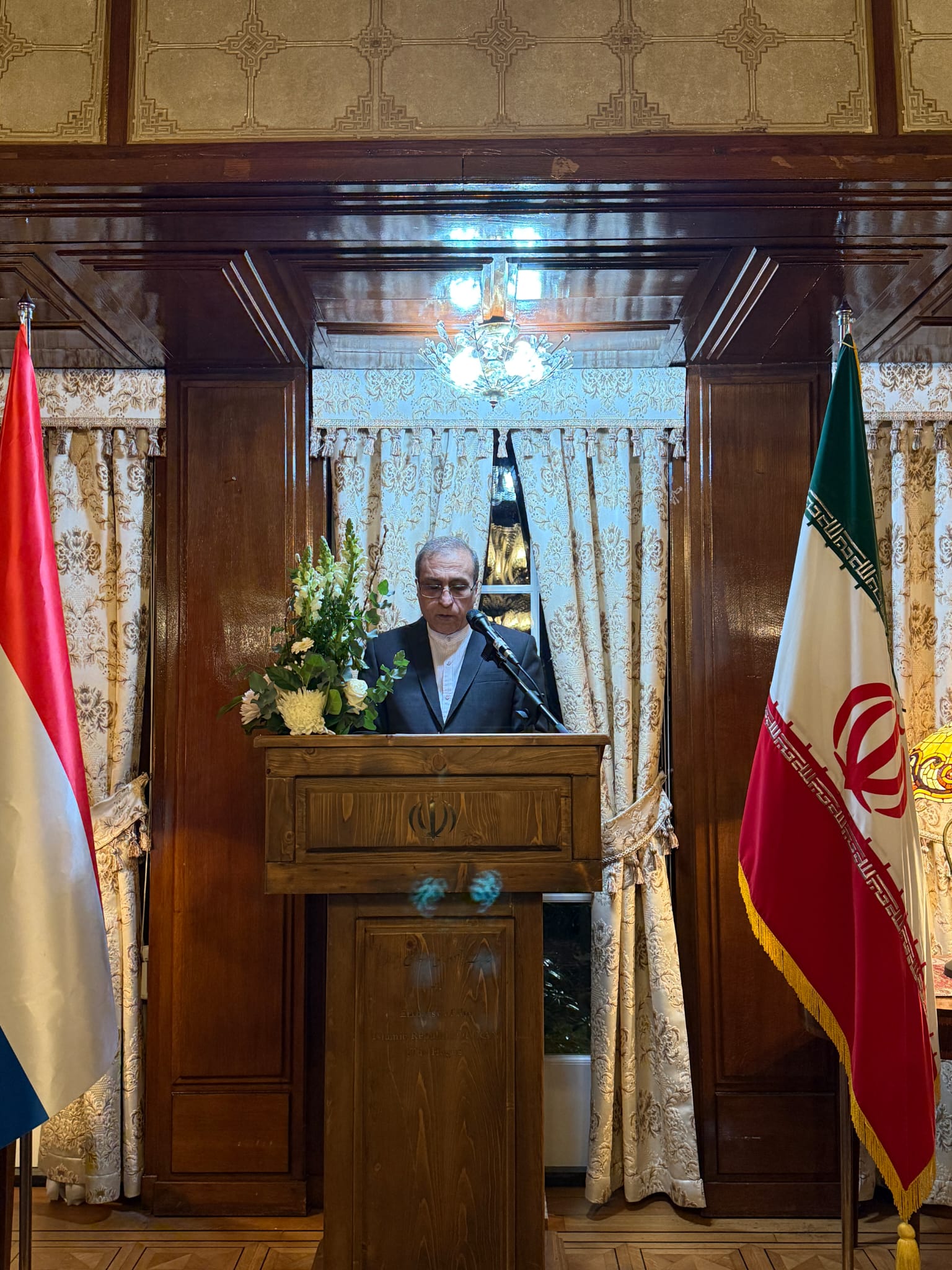 مراسم گرامیداشت چهل و ششمین سالروز پیروزی انقلاب شکوهمند اسلامی در تاریخ 22 بهمن 1403 با حضور مقامات وزارت امور خارجه هلند، سفرا، دیپلماتهای مقیم، مدیران سازمانهای بین المللی مقیم لاهه و جمعی از ایرانیان سرشناس برگزار گردید.